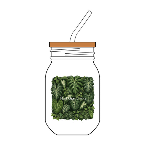 16oz Engraved Glass with Straw - Tropical Leaf "Plant Chore Chalice"